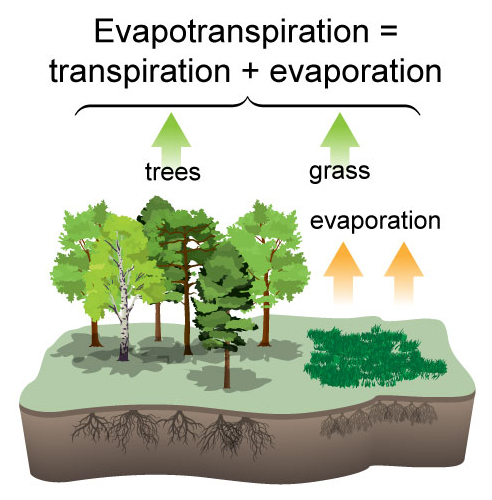 蒸散量(ET)是蒸發(fā)量和植物蒸騰量的總和。